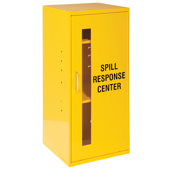 - Durable safety yellow powder coat finish with ""Spill Response Center"" clearly labeled across the front