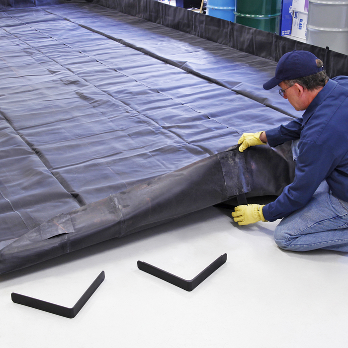 - Chemical-resistant berm is compatible with acids, water, oils and solvents