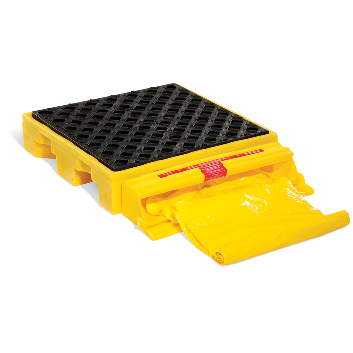 - Large spills and leaks flow into the bladder through a bulkhead fitting; protective trap door opens automatically to allow bladder to unfurl and fill up