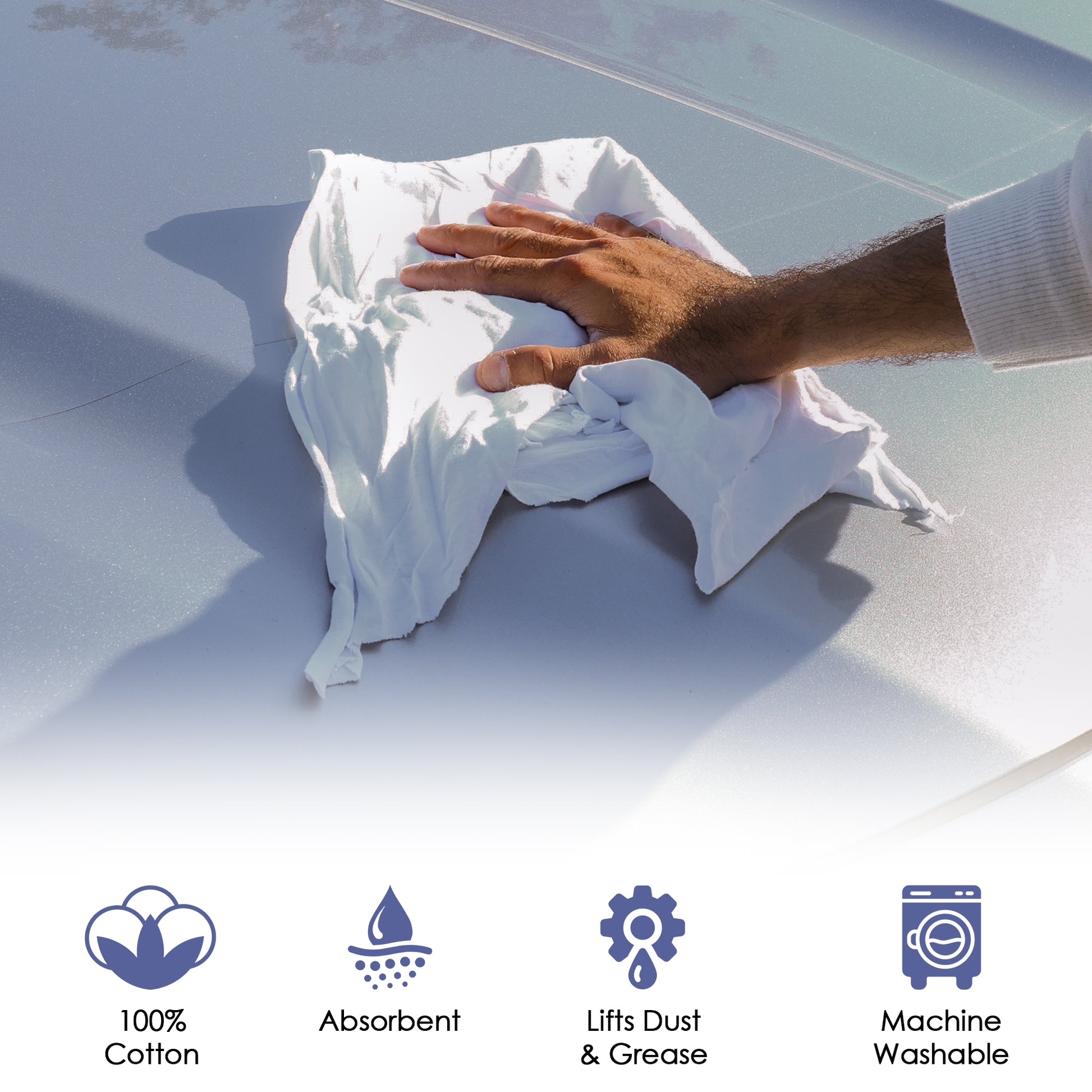 New white knit t shirt rags are widely used for painting, staining, polishing, and general cleaning across industries. Their dye-free, low-lint construction ensures a clean finish on wood, metal, and glass surfaces. They’re also great for detailing and precision applications where colored fabrics could transfer residue or dye.