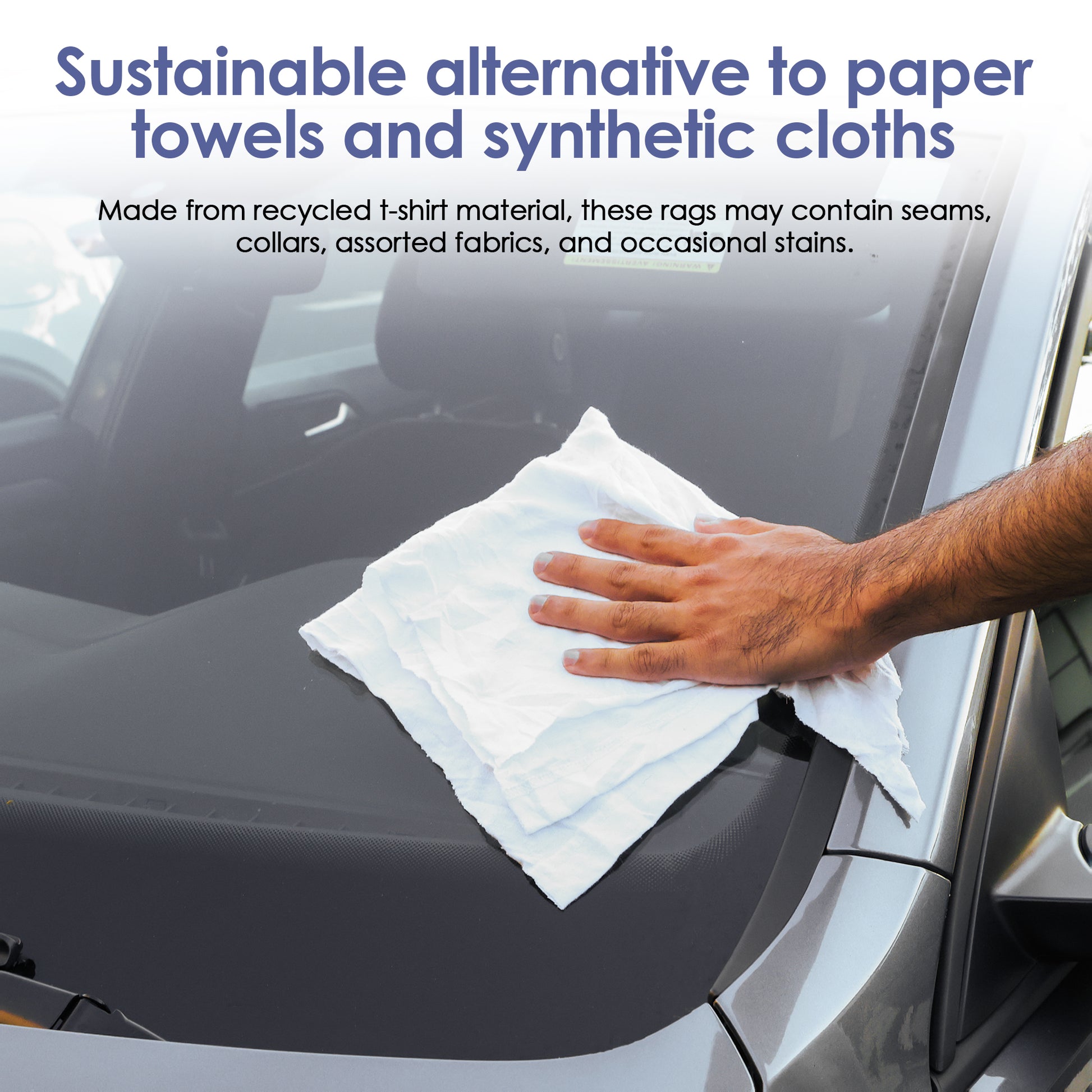 - Eco-Friendly Cotton Blend – Made from pre-consumer recycled cotton blend t-shirt material, these rags offer a sustainable, high-performance alternative to disposable paper towels and synthetic cloths.