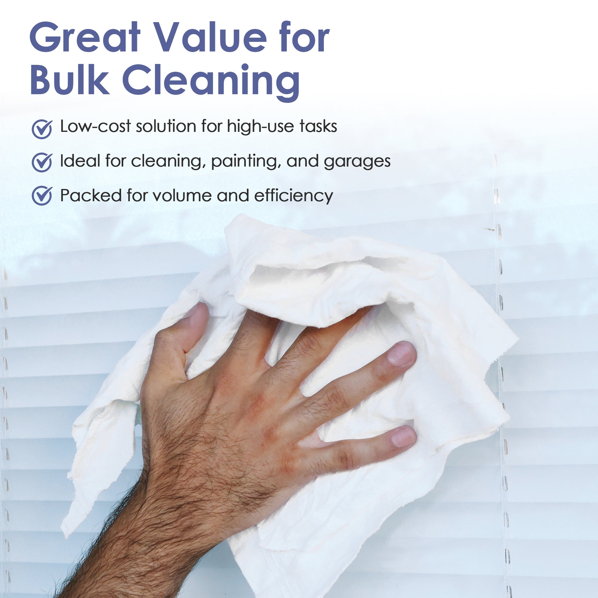 These cloth rags are excellent for painting, staining, polishing, and cleaning surfaces that require a dye-free wipe. Their absorbent cotton composition makes them perfect for oil, water, or solvent use in industrial and shop environments. They’re also a favorite for general-purpose cleaning where high absorbency and affordability are priorities. Shop related products such as color t shirt rags and low lint options.